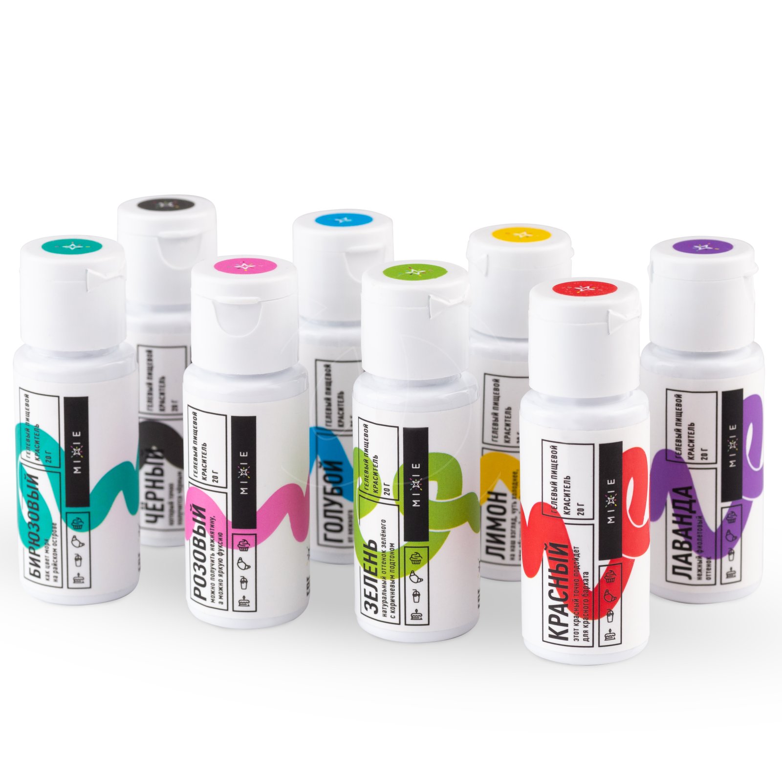 Специально для вас мы создали набор гелевых красителей Mixie в самых хитовых оттенках: лимон, красный, розовый, лаванда, голубой, бирюзовый, зелень, черный.